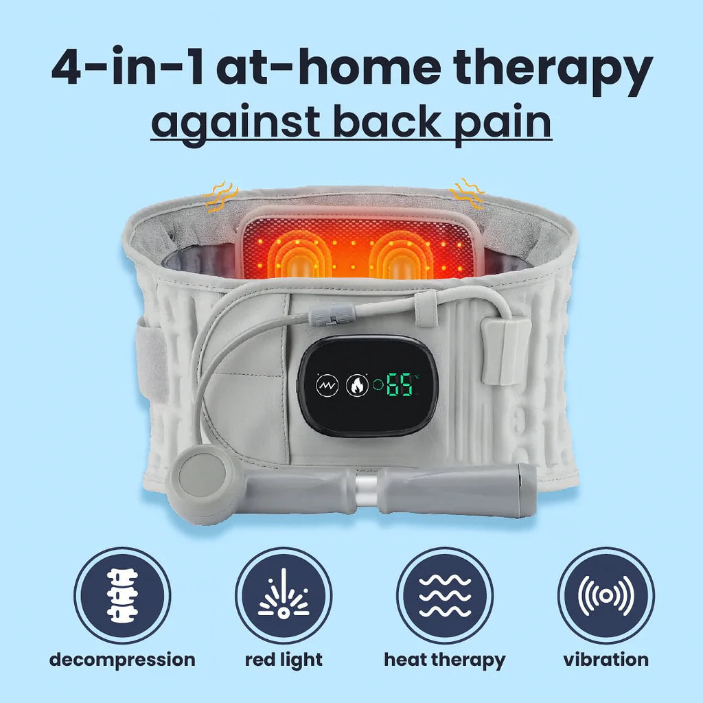 - 4 az 1-ben dekompressziós öv: Gerincerősítő, hőterápiás és vibrációs masszázs funkciókkal felszerelt