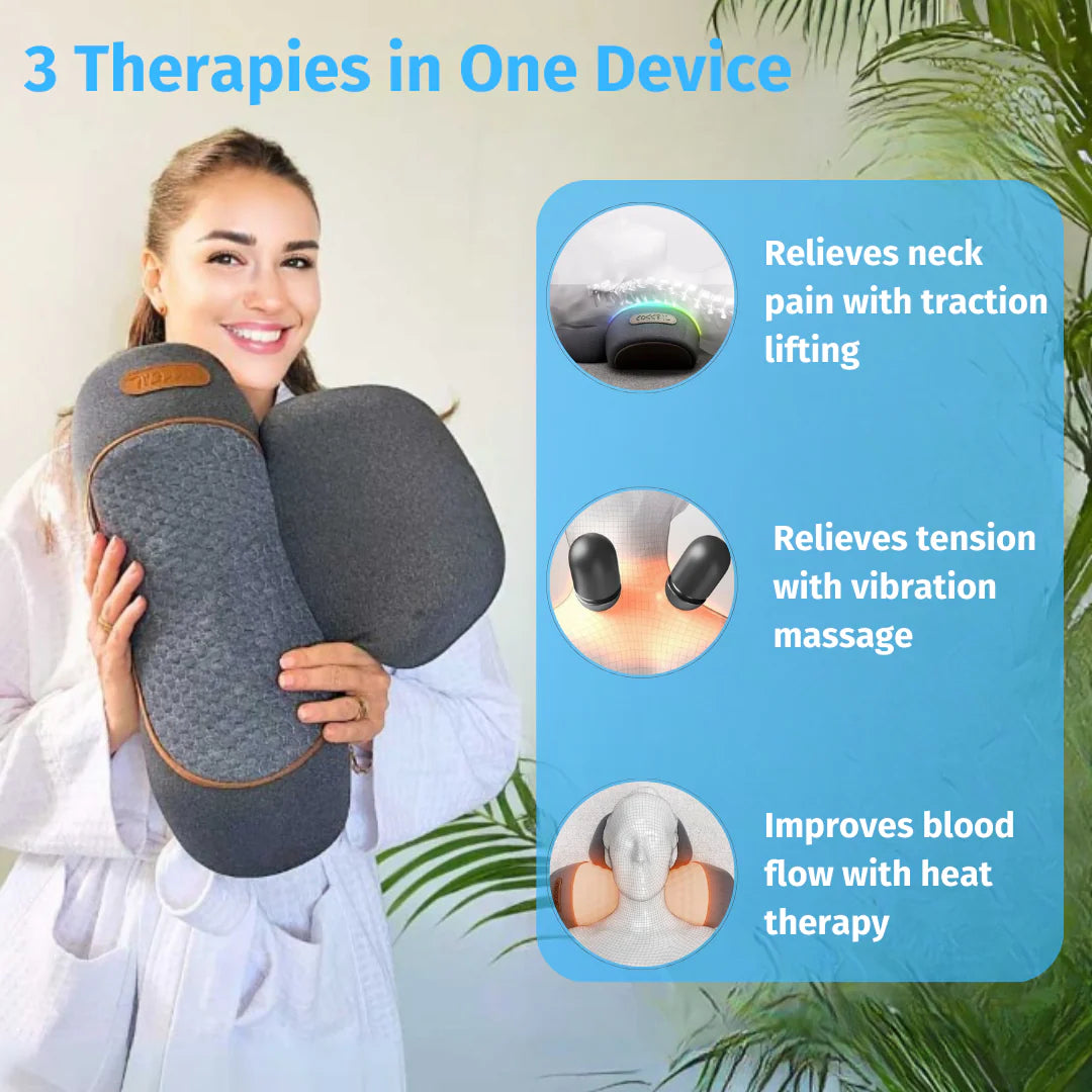 • Hőterápia:  A készülék olyan fűtőelemeket tartalmaz, mint az infravörös hő és a hagyományos fűtőpárnák. Ezek a fűtőelemek olyan hőt termelnek, amely behatol a bőrbe, és eléri a nyak izmait és lágy szöveteit. A hőterápia segít fokozni a véráramlást a területen, ellazítja a feszült izmokat, valamint enyhíti a merevséget és a kellemetlen érzést.