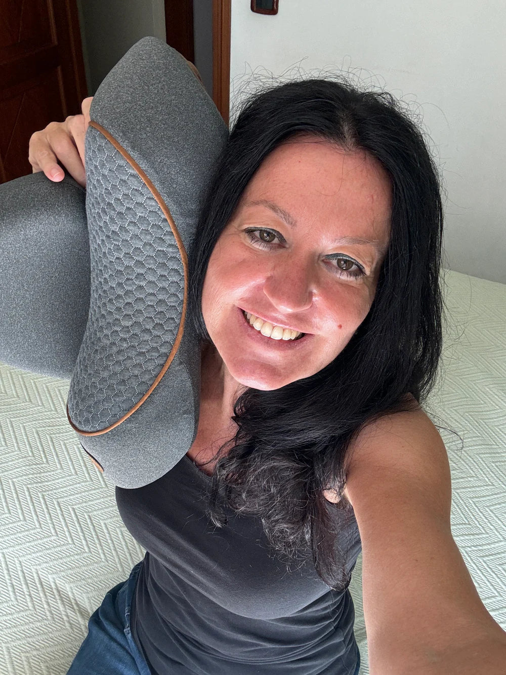 „Régen nyak-, váll- és karfájdalommal ébredtem. Sírtam a fájdalomtól. Néha a fájdalom olyan éles volt, hogy alig tudtam megtartani egy mobiltelefont vagy egy vizespalackot. Arra gondoltam, hogy veszek egy új matracot és fájdalomcsillapítókat. Amióta megkaptam ezt a nyaktámasztót, nemcsak a testtartásom javult jelentösen, de most már jobban tudok aludni éjszaka, és minimális, vagy egyáltalán nincs fájdalommal ébredek. Nagyon köszönöm." - Orsolya