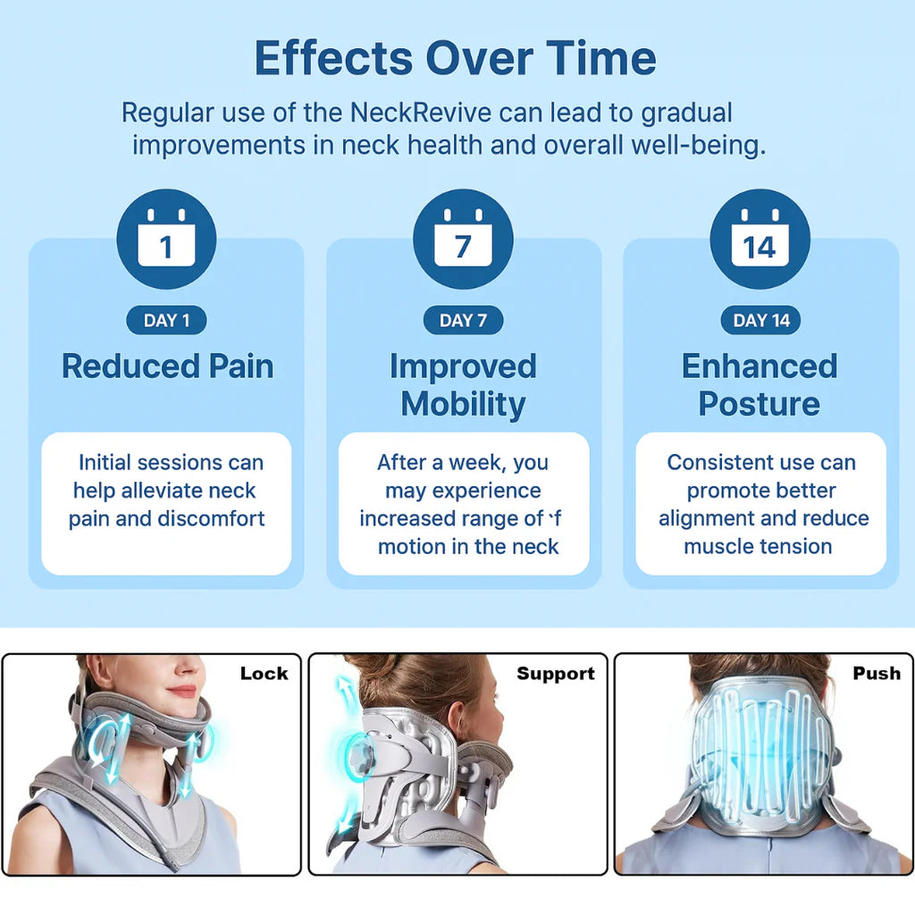 ✅A felépülés során a kiigazítás és a dekompresszió kombinációja fokozza a vérkeringést a nyaki gerincben, felgyorsítja a felépülést és enyhíti a fájdalmat.