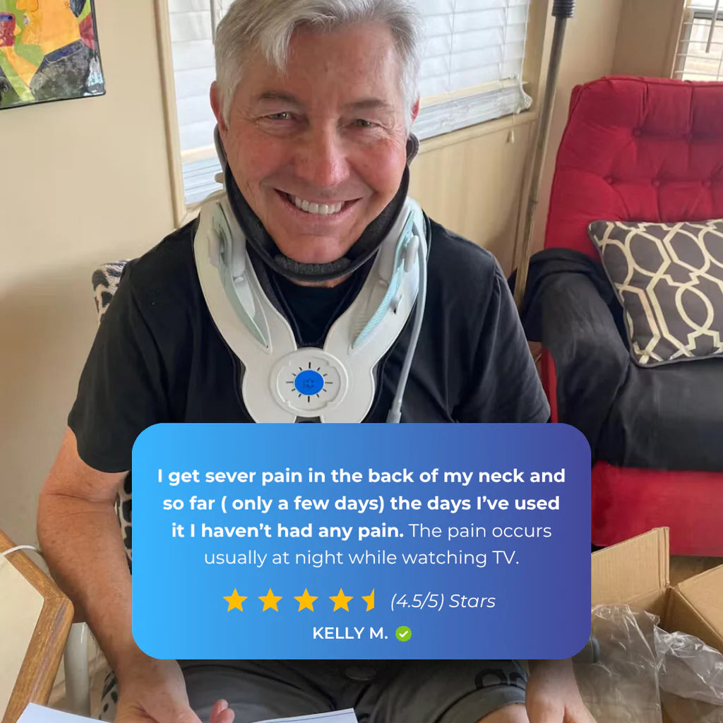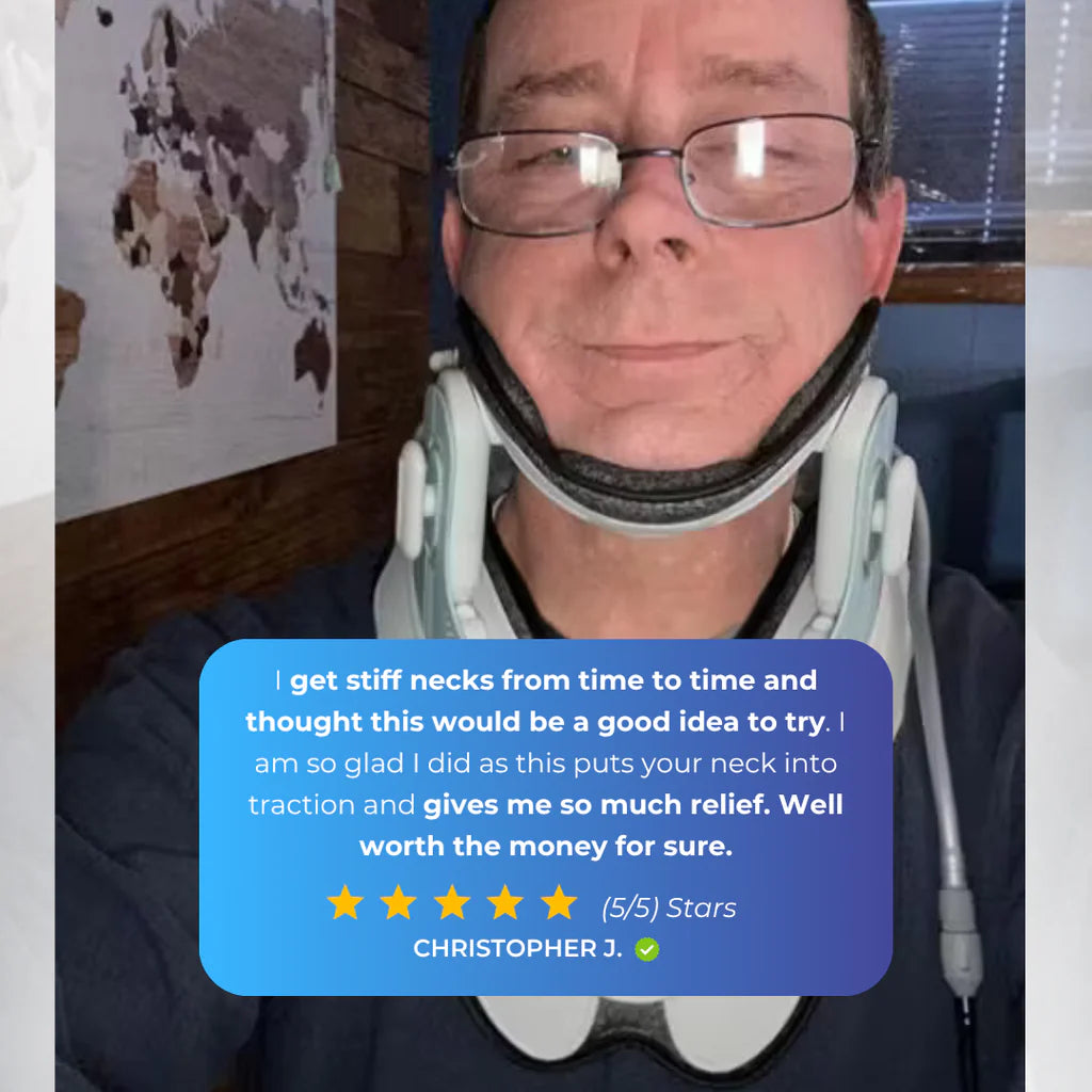 Két kidudorodó porckorongom van a nyakamban, ami súlyos nyakfájdalmat és zsibbadást okoz a karjaimban. Körülbelül két éve küzdök ezekkel a problémákkal, és talán a műtéten kívül más megoldás nem volt rám. (Amit próbálok elkerülni, de csak néhány hete használom ezt a készüléket, és máris észrevettem a különbséget. Kevésbé fáj, amikor felébredek, és a karom kevésbé zsibbad. Nagyon ajánlom!) - James P.