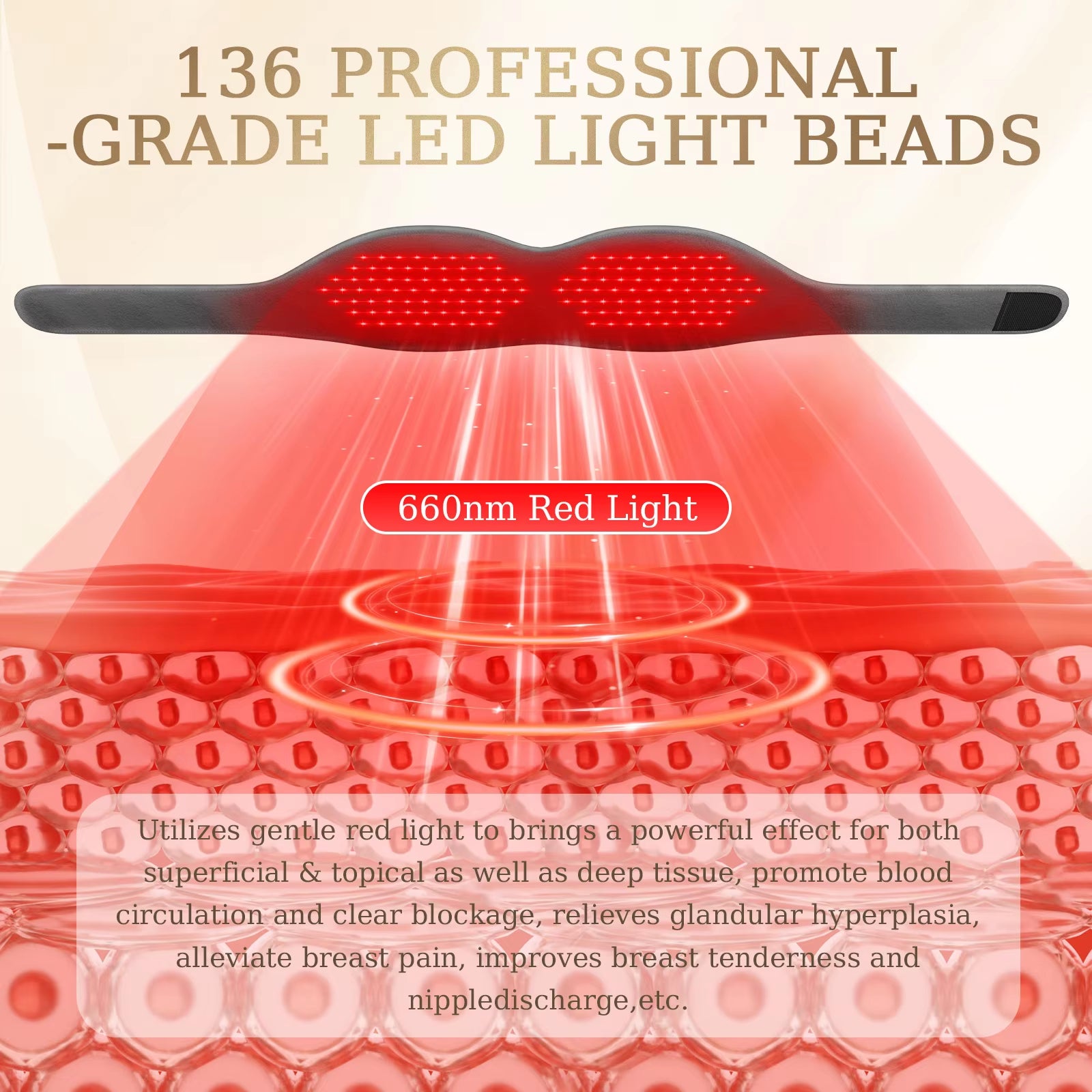 A 660 nm-es vörös fényhullámok aktiválják a sejtek energiáját, felgyorsítják a vér- és nyirokkeringést, megelőzik a mellproblémák kiújulását, és javítják a mellszövet anyagcseréjét.