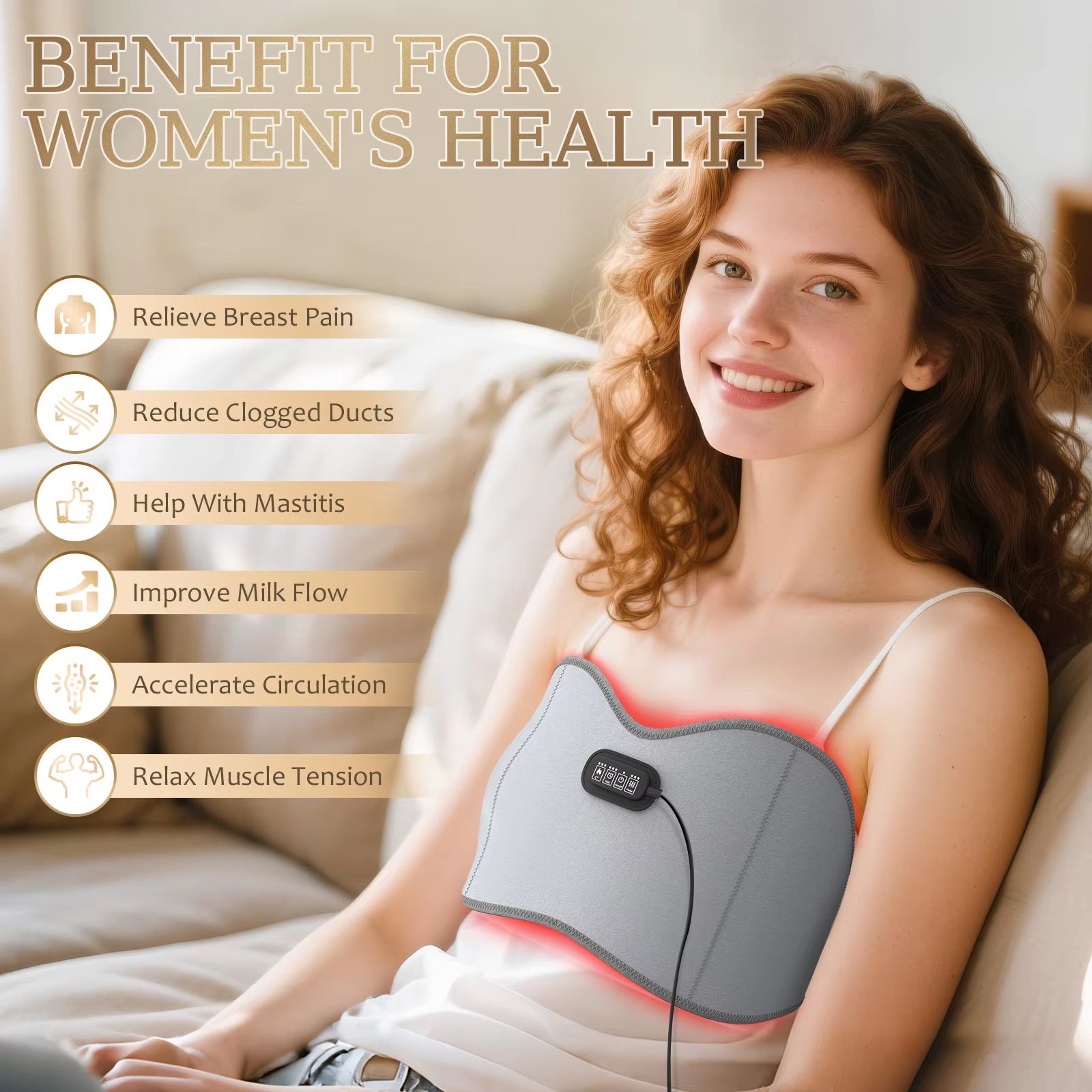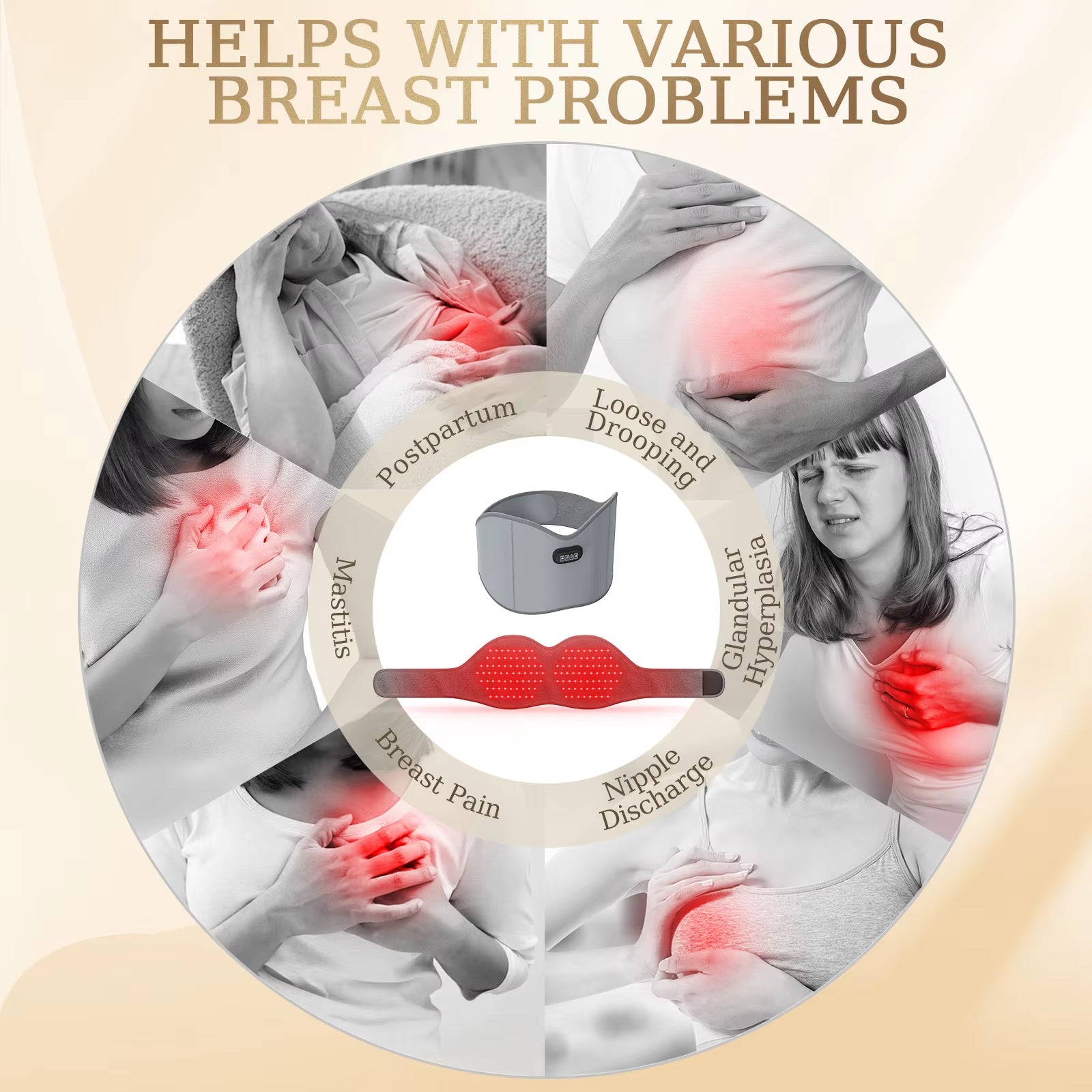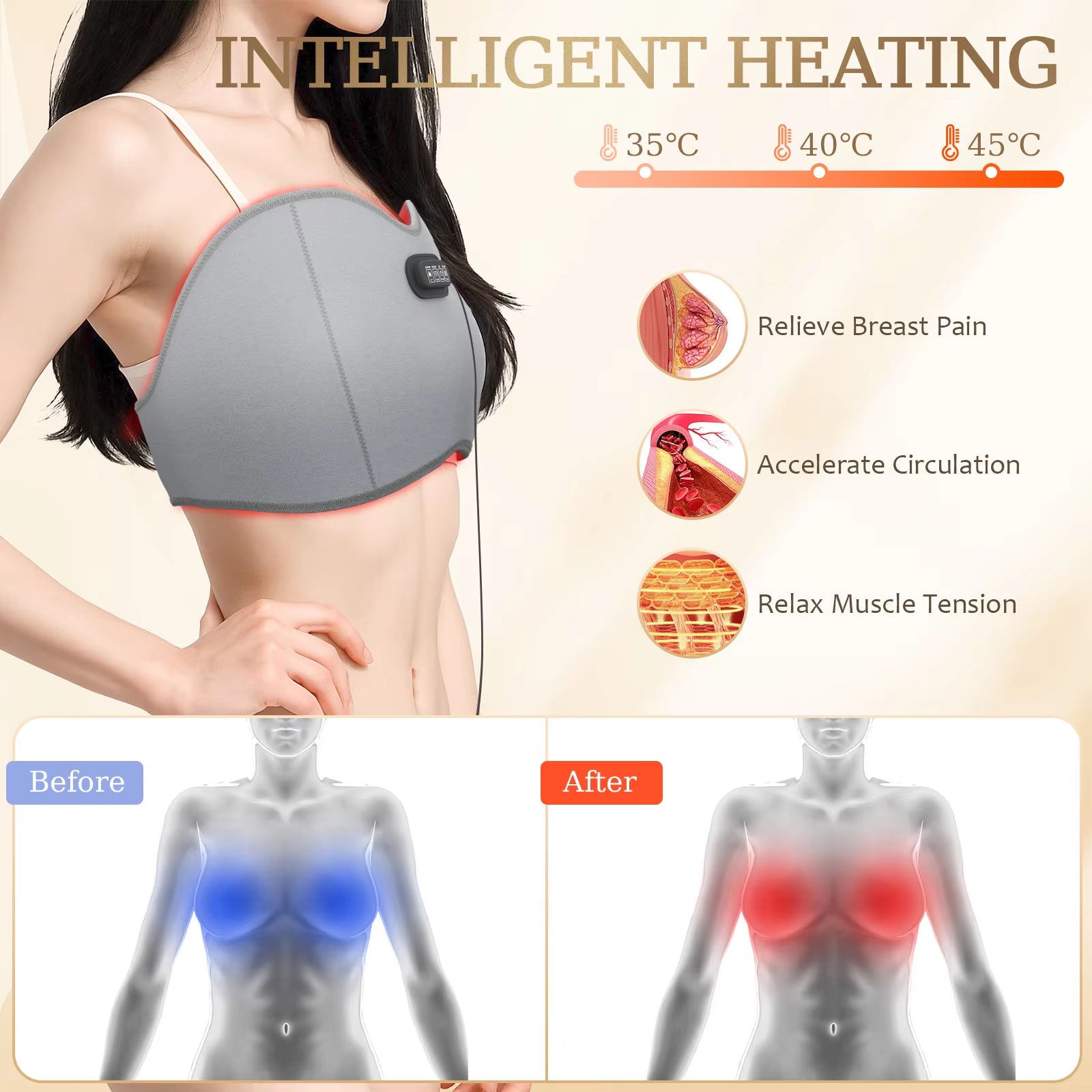 Ez a vörös fényű mellmasszírozó kifejezetten a mellek egészségére és ápolására lett kifejlesztve. Hármas technológia – vörös fényterápia, állandó hőmérsékletű hőborogatás és vibrációs masszázs – alkalmazásával hatékonyan enyhíti a tőgygyulladást, a mellmegnagyobbodást és a csomókat, miközben javítja a vérkeringést és formálja a természetesen egészséges mellformát.