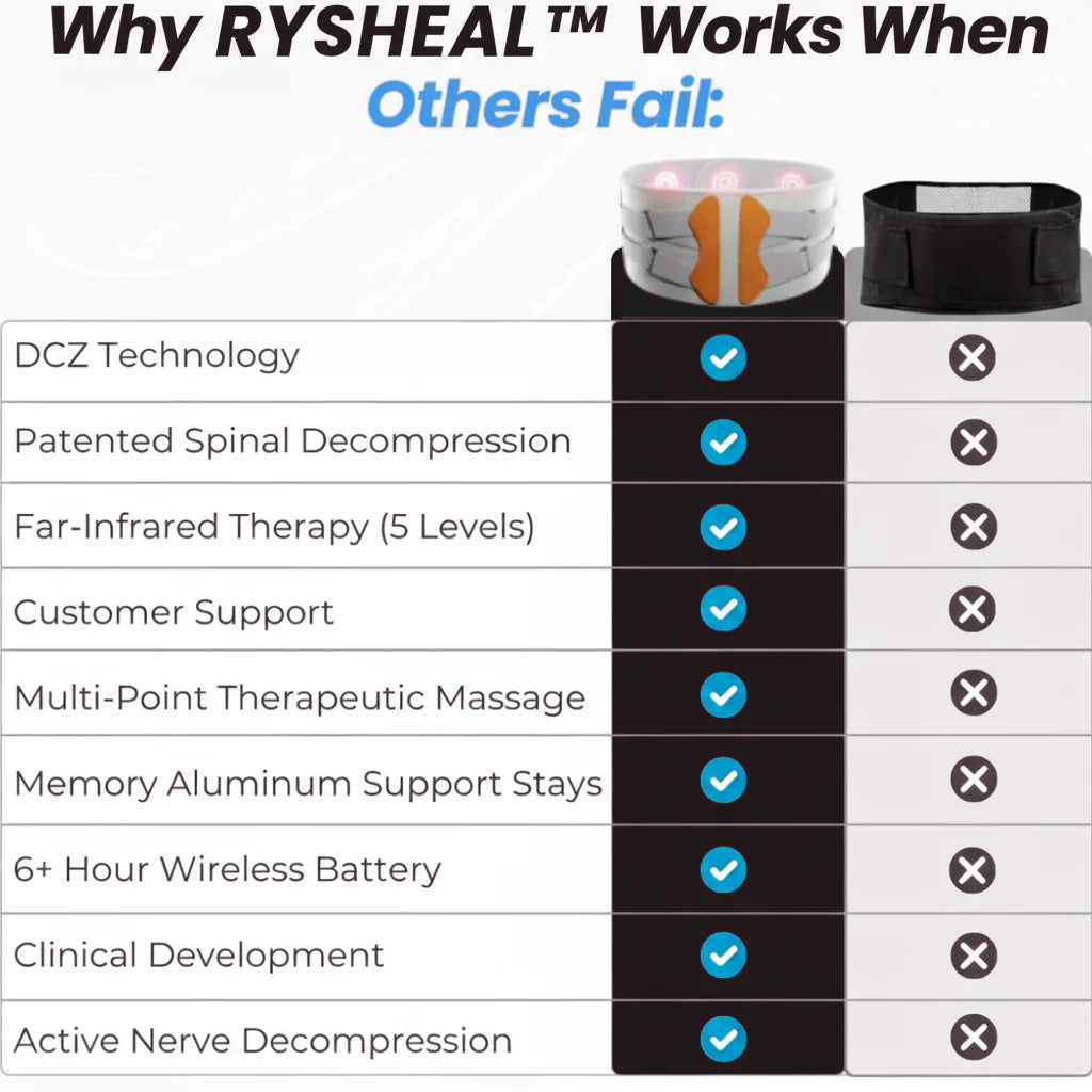 A RYS HEAL™ öv fejlett dupla kompressziós zónarendszert használ a derék stabilizálására és a porckorongokra és idegekre nehezedő nyomás enyhítésére – az isiász és a krónikus hátfájás két leggyakoribb okára.
