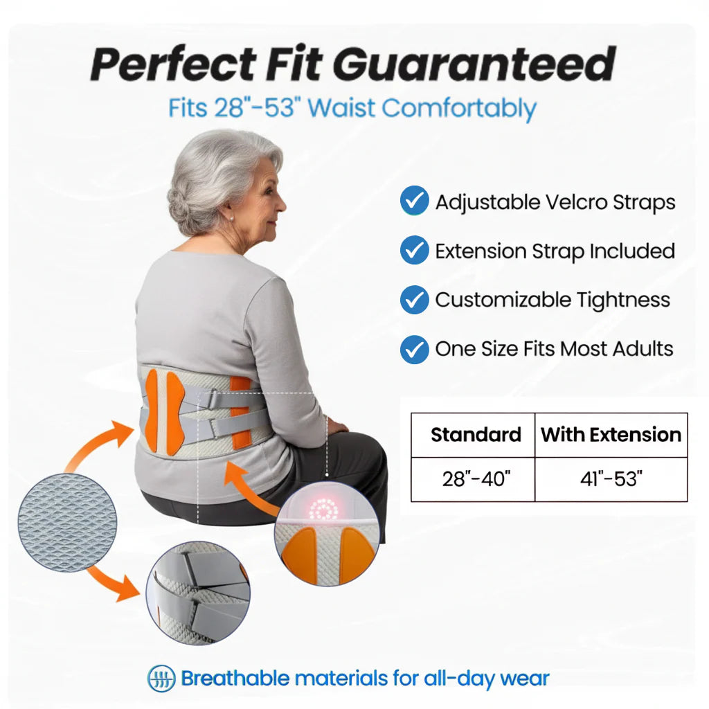 Ez a kétzónás kompresszió gyengéden kiegyenesíti a gerincet, javítja a testtartást, és azonnal enyhíti az ülőidegre nehezedő nyomást – így segít kevesebb fájdalommal mozogni és magabiztosabbnak érezni magát a mindennapi tevékenységeiben.